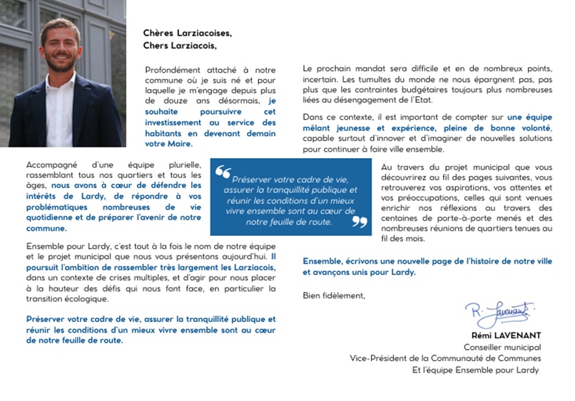 Le 15 mars, un seul vote utile pour Lardy, c'est la liste ENSEMBLE POUR LARDY avec Rémi Lavenant!